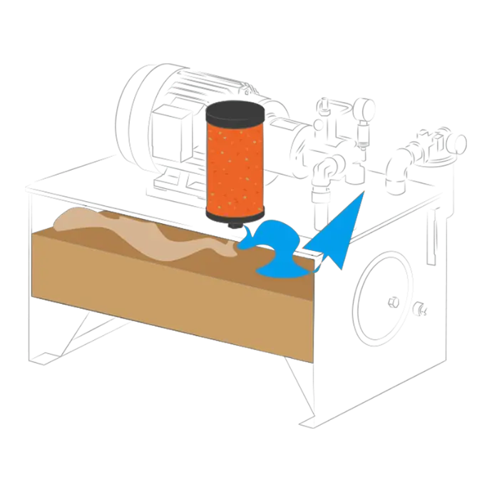 The oil level rises, air is pressed out to equalize pressure. The adsorber prevents oil fumes from escaping through the carbon inside. In addition, the air flow removes some of the previously stored water from the adsorber, thus ensuring cyclical self-regeneration.